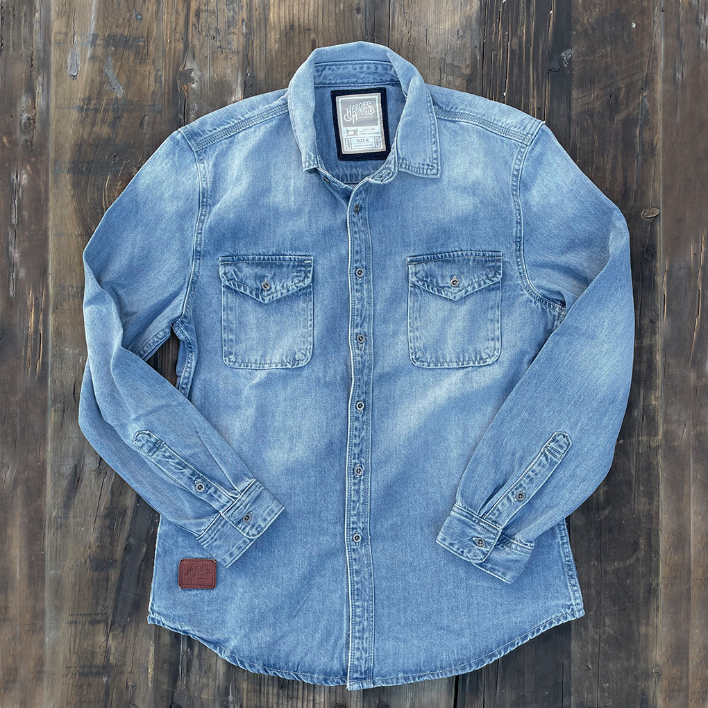 Our heroes motors Shirt will quickly become one of your favorites. Comfortable, casual, and non stretch denim.